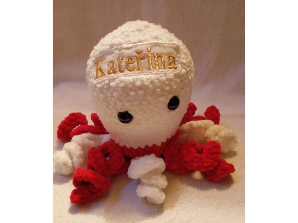 Chobotnička háčkovaná, barevná, 15 cm barvy na přání se jménem...lze vybrat barvy chobotničky 2-3 a jméno křesní jakékoliv
