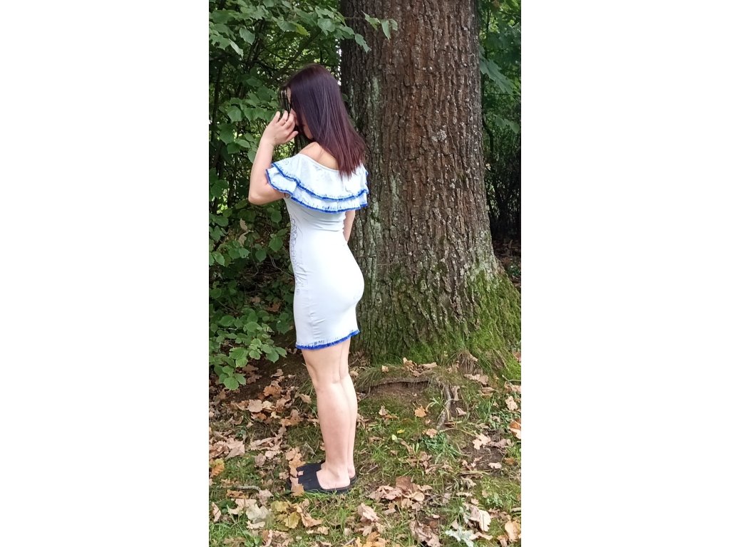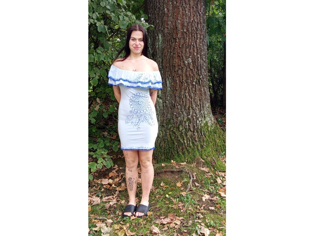 Modré šaty bez rukávu s dekorem modrý lapač snů, velikost S, materiál bavlna s elastenem