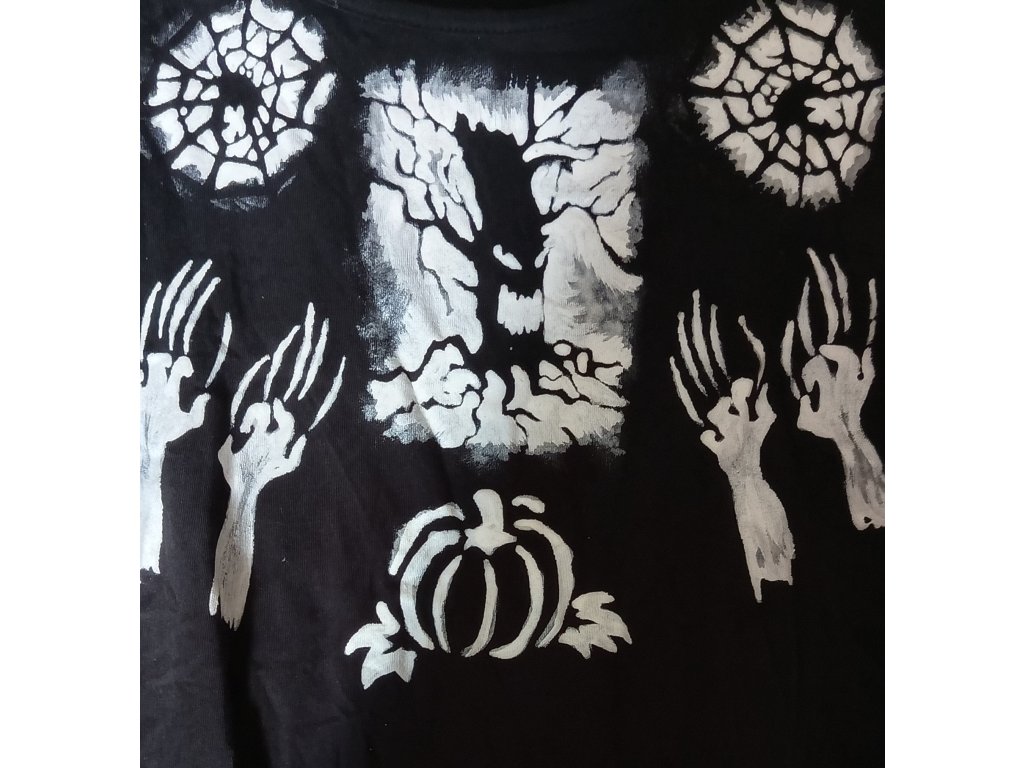 Tričko s dlouhým rukávem barva černá, velikost S, motiv bílý halloween, materiál bavlna s elastenem
