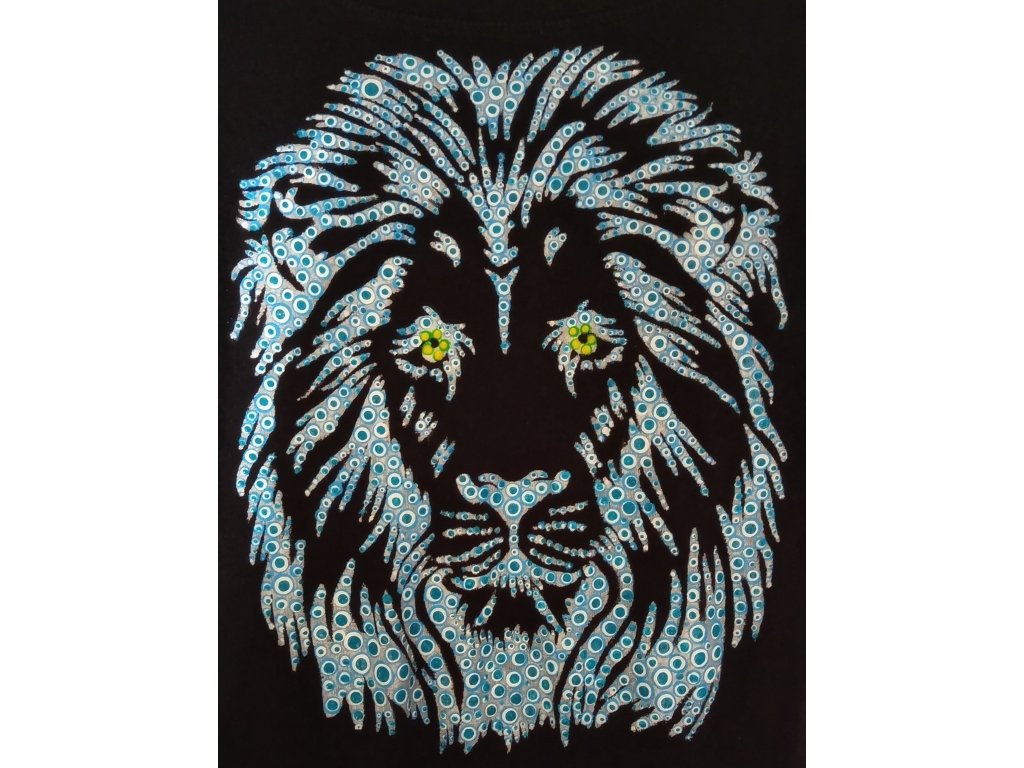 Tričko s krátkým rukávem barva černá, velikost S, motiv modrobílý lev